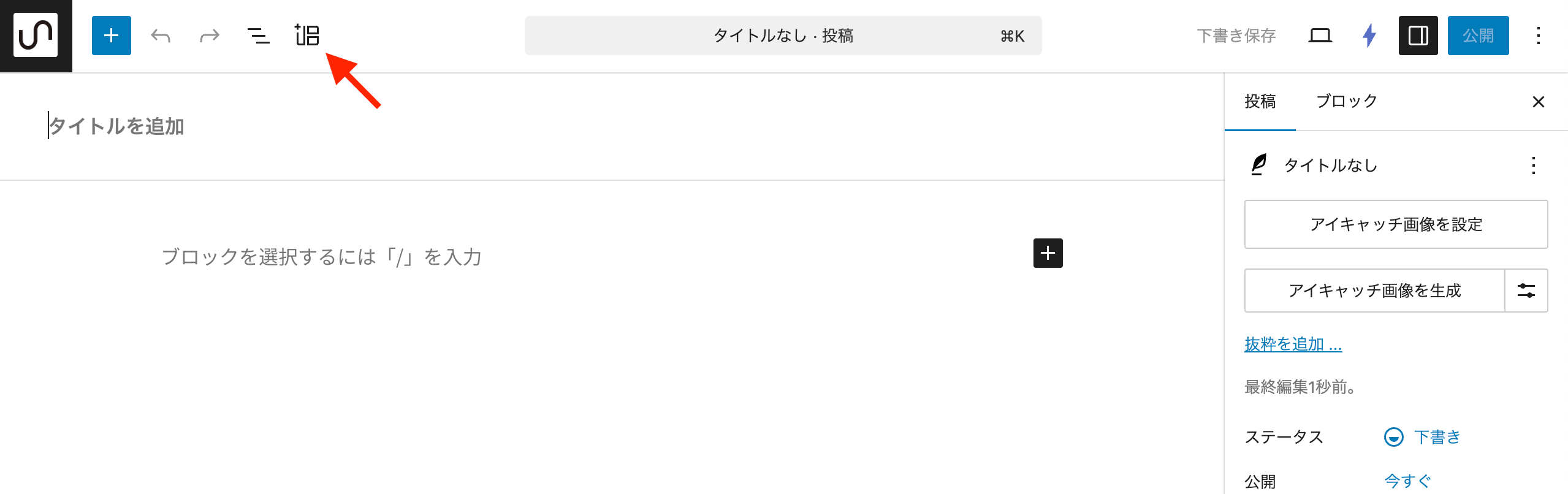 下記は、unitone でワイヤーフレームジェネレーターの起動ボタンをブロックエディター自体のツールバー(ブロックのツールバーではない)に追加している例です(いろいろ省略して必要な部分だけ記述しています)。