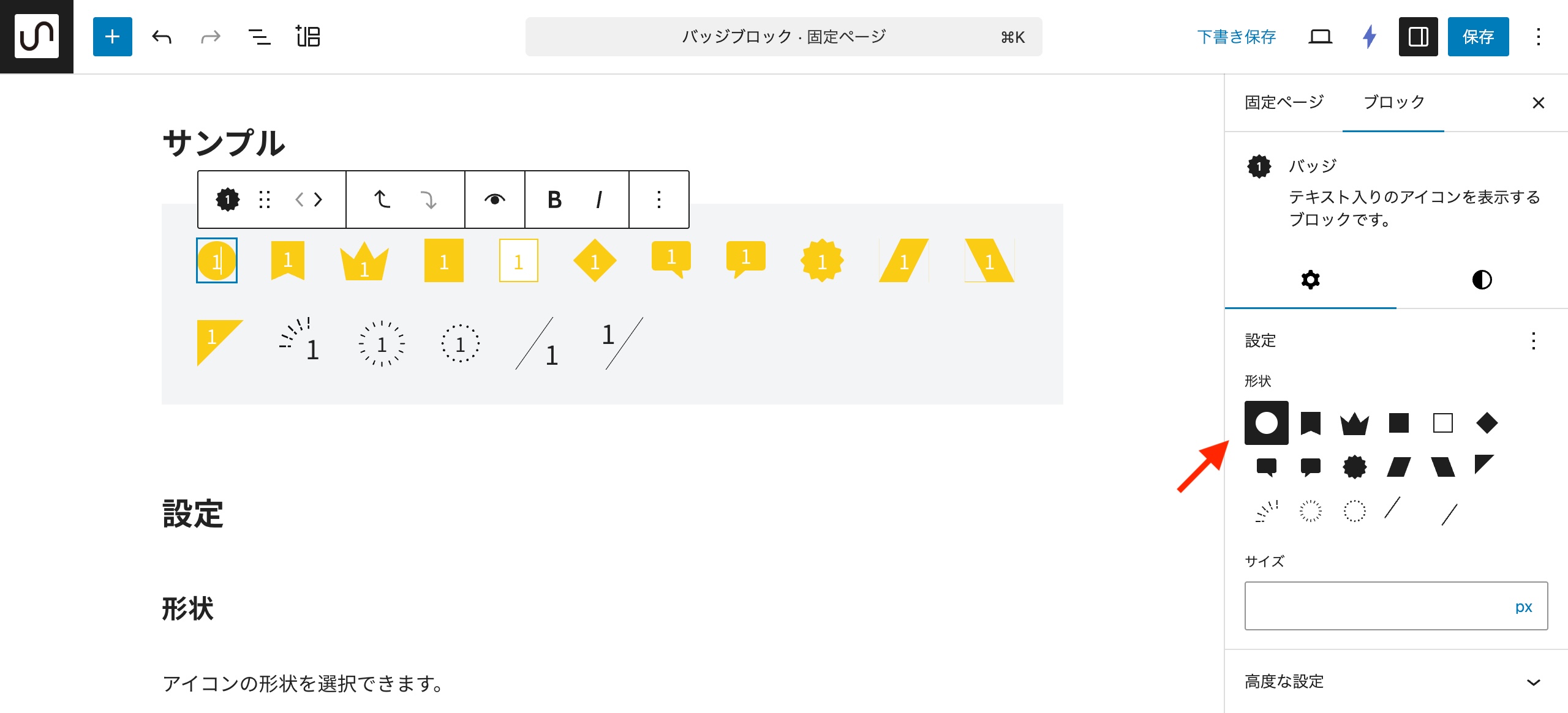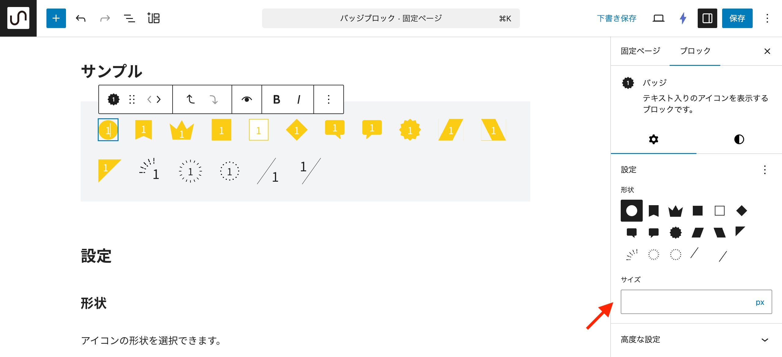 サイズは文字サイズとのバランスが自動的に考慮されます。サイズ指定が小さすぎる場合はそのまま適用されず、適切な大きさで表示されます。