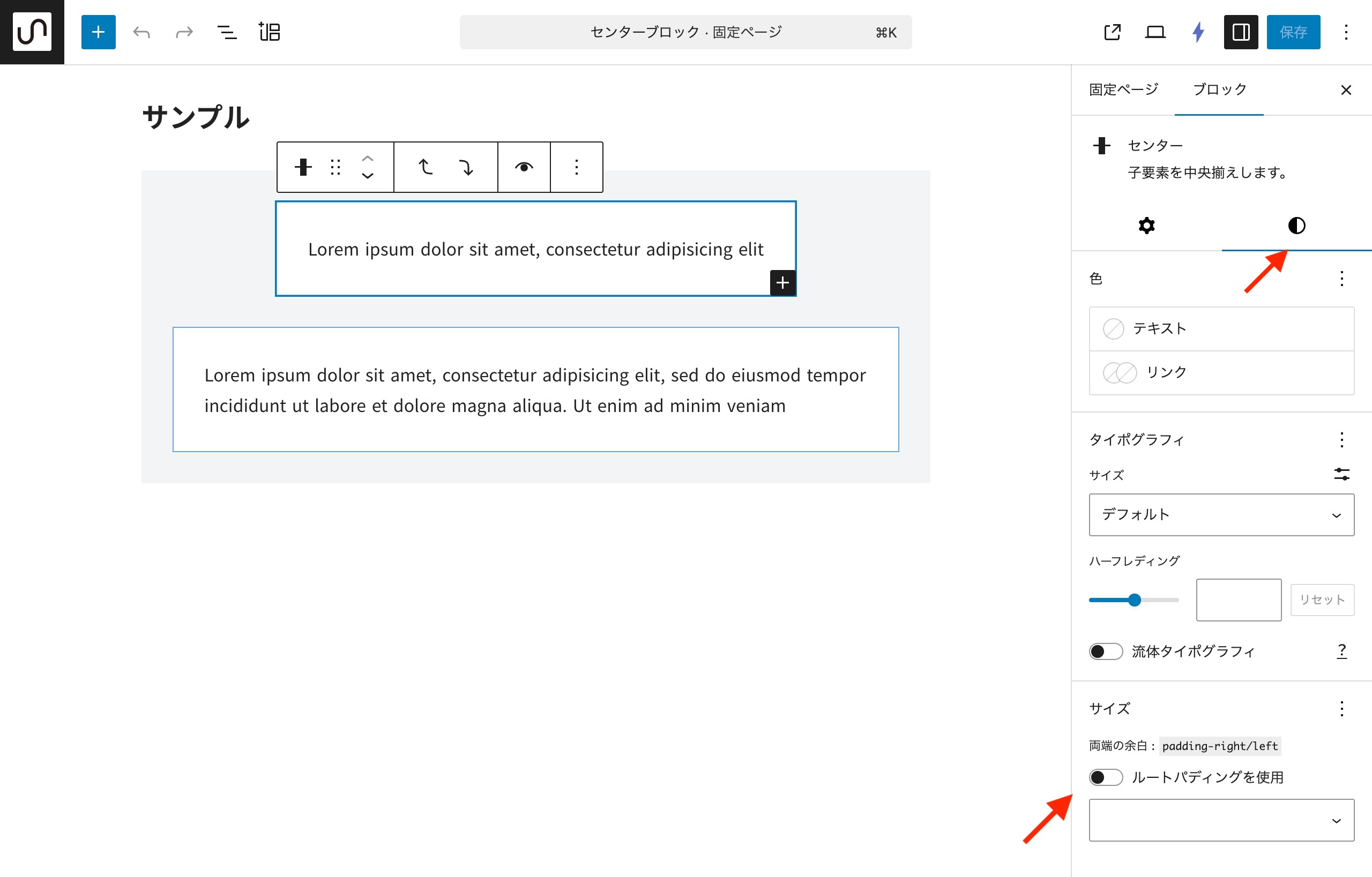 (テキストではなく)ブロック自体を中央揃えしたいときに使用するブロックです。