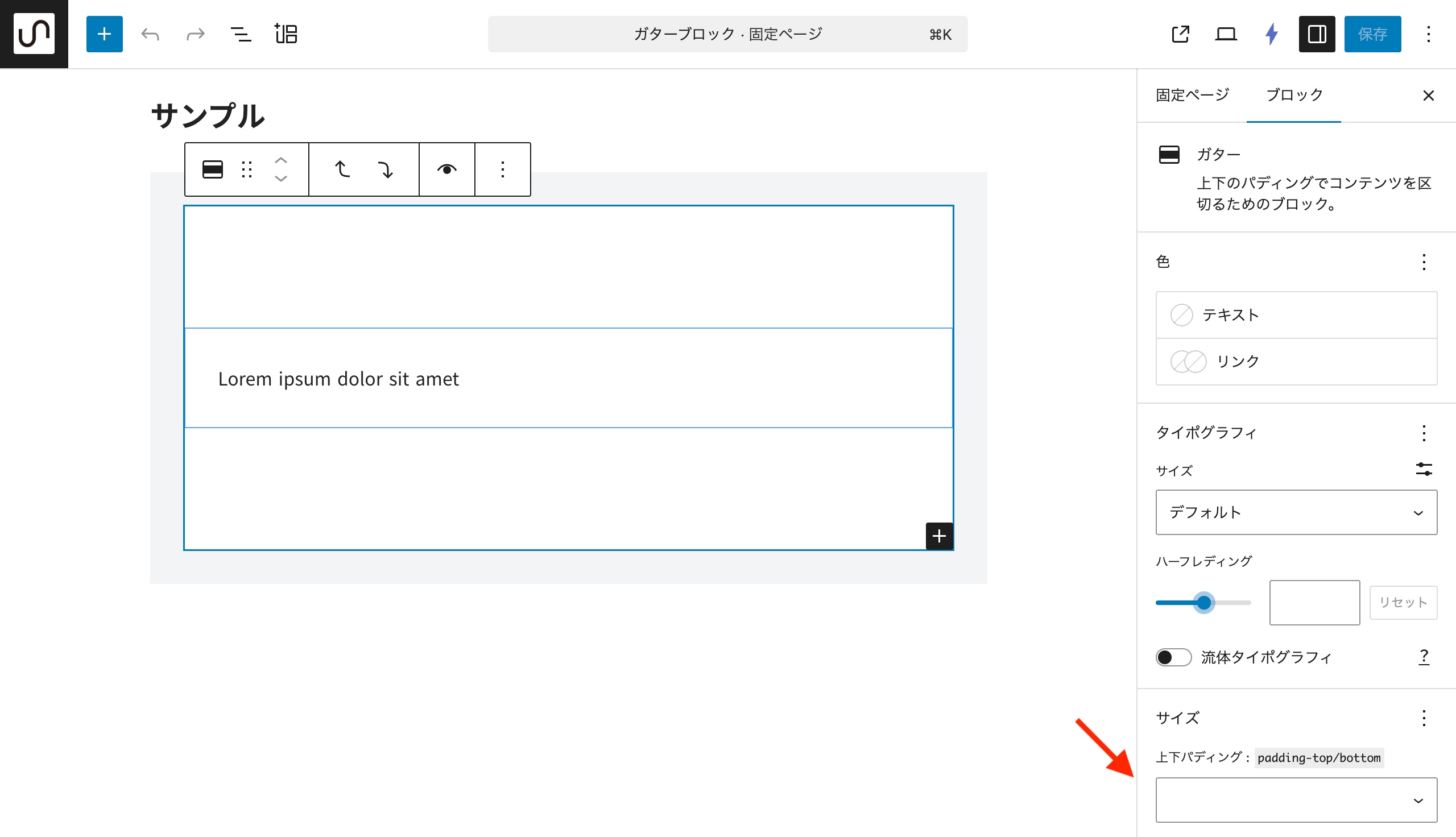 コンテンツを上下パディングで区切りたいときに使用するブロックです。