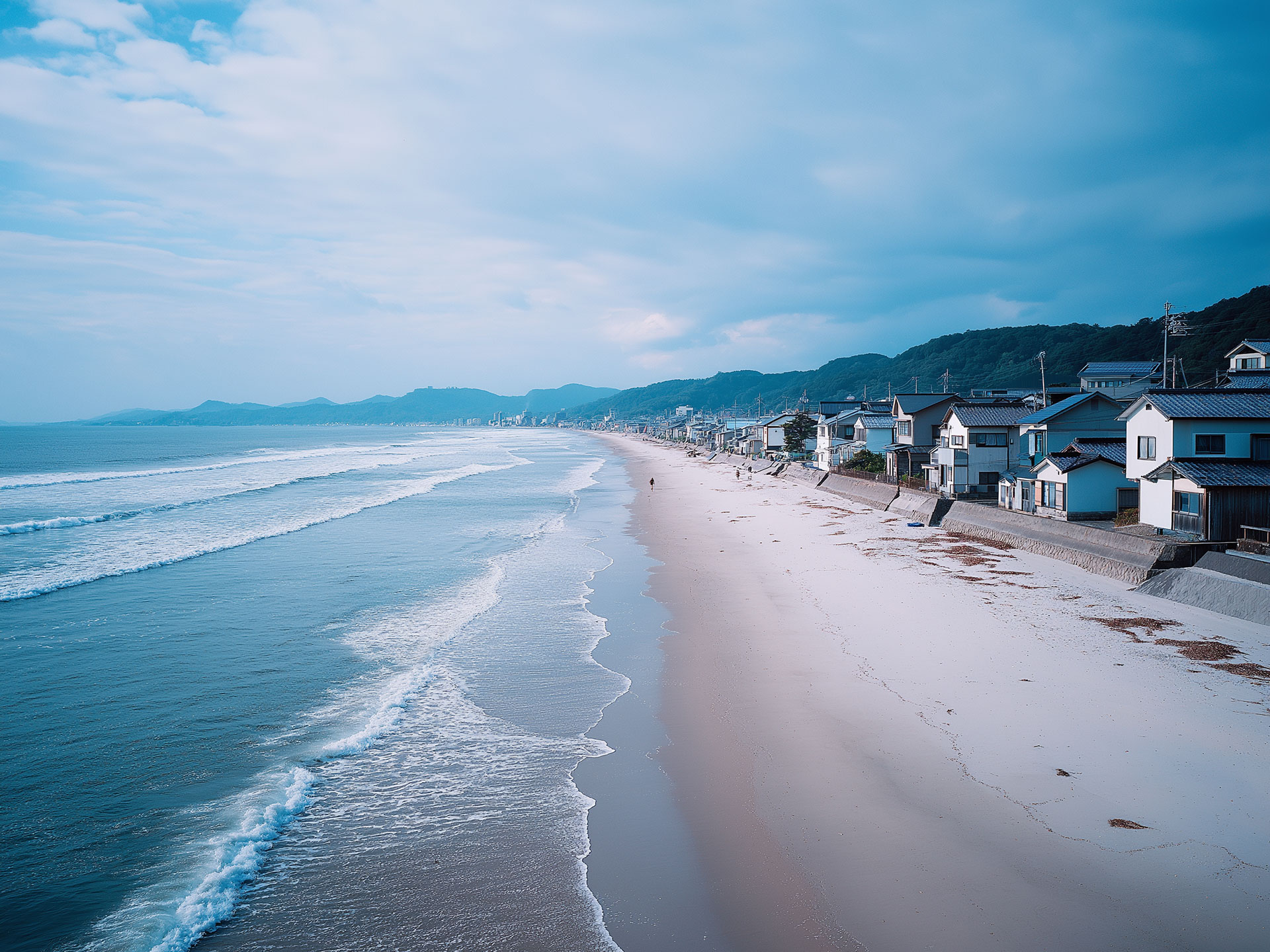 波が静かに寄せては返す。潮の香りが風に乗り、空には細い月が浮かぶ。どこか遠くの海の向こうに、まだ見ぬ世界が広がっている。